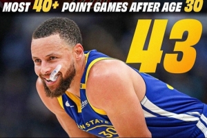 這樣一來,他在30歲之后拿到單場40+得分的場次來到了43場,離喬丹的44場僅一步之遙。