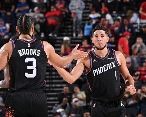 布克出戰(zhàn)29分鐘,投籃22中12,三分球10中3,罰球6中6,轟下33分5籃板7助攻的數(shù)據(jù)。