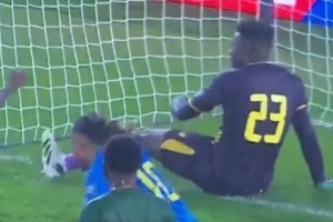 第91分鐘,民主剛果由后衛姆貝巴在角球中攻破球門,奧納納伸腳但是沒能擋住皮球打進近角,被進球后癱坐在地↓