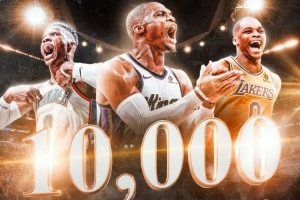 NBA杯小組賽,國王半場61-61森林狼,威少在第二節解鎖生涯第1萬次助攻成就!