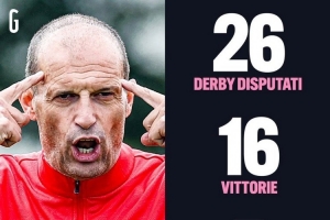據米蘭體育報數據統計,米蘭主帥阿萊格里此前共26次帶隊出戰米蘭德比(米蘭)以及都靈德比(尤文),戰績為16勝5平5負。