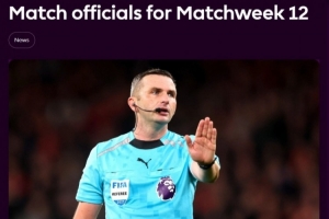 體育資訊11月18日訊 英超官方公布聯賽第12輪各場執法裁判,邁克爾-奧利弗將執法阿森納vs熱刺。